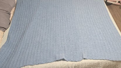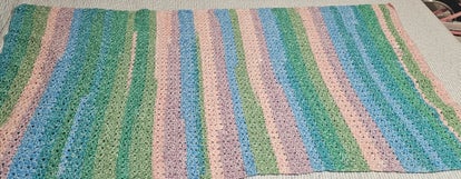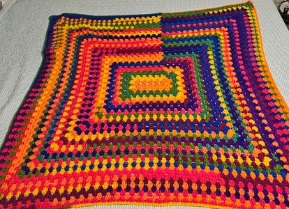 This small but vibrant blanket is made with 100% arcylic yarn.